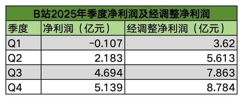 B站交出的财报并没有那么“有点破站”。 3月5日,B站2025年第四季度及全年财报显示,B站去年全年营收303.5亿元,同比增长13%。净利润和调整后净利润分别为11.9亿元和25.9亿元,与上年同期相比均由赤字转为盈余。与广告业务密不可分的B站首次实现全年盈利。据财报统计,B站广告收入已连续12个季度增长,成为B站收入增长最快的业务。其收入份额与传统增值服务公司相似。在首次实现年度盈利后,哔哩哔哩仍然对内容社区业务充满信心。 “内容平台竞争的底线是看哪个平台的质量最高ty 内容。尤其是当工业生产变成快餐内容的时候,优质内容将变得越来越稀缺。”B站总裁兼首席执行官陈锐表示,高管们在财报电话会议上回答的更多是关于变现的问题,而不是内容策略。陈锐建议,在未来的竞争中,B站首先要保持和强化优质内容的精神,然后确保UP主(B站的创作者)在平台上有更好的发展、更长的生命周期和更多的商业收益。他表示,超过300万UP主通过收入获得收入。去年B站也是如此,BAT(百度、阿里巴巴、腾讯)、字节等各大互联网公司都明确表示,正在争夺AI桌上的一席之地,而刚刚实现盈利的哔哩哔哩目前已经选择将AI作为自己的发展臂膀,并且还在探索基于UGC(用户生成内容)内容的可能转化或提升。未来,哔哩哔哩将用AI来更多地关注如何将用户与平台内容进行匹配,将AI广告变现,并推出AI辅助创作工具,包括AI翻译。与腾讯、网易等大公司固守MOBA(竞技在线多人游戏)、RPG(角色扮演游戏)、FPS(第一人称射击游戏)等品类不同,在游戏方面,哔哩哔哩也专注于做自己品类的领导者,避免大厂商的垄断。提出了其成为SLG(策略模拟游戏)旗舰产品的长期运营和要求。 LuMi即将推出的《三国演义:百将传奇》和《卡客!陈睿》瞄准年轻玩家,希望前者能成为大DAU(每日活跃用户)产品。广告收入占比超过30%,首次实现全年盈余。 2025年,B站有望实现首次全年盈利,一季度就已经开始显现增长迹象。从调整后净利润来看,B站去年四个季度实现盈利,分别为3.62亿元、5.613亿元、7.863亿元、8.784亿元。从净利润来看,B站也连续三个季度实现盈利。去年第二季度至第四季度,B站净利润为2.183亿元、4.694亿元。分别为2025年第四季度哔哩哔哩净利润和5.139亿元人民币调整后净利润。 新京报贝壳财经记者魏英姿:哔哩哔哩的盈利能力受到广告业务强劲增长的推动,营收占比接近传统增值服务业务。据财政部称官方报告显示,B站去年的广告收入为100.6亿元,增值服务收入为100.6亿元。 119.3亿元 据记者测算,两者的收入比例将分别约为33.1%和39.3%。i的广告收入已连续12个季度增长,成为哔哩哔哩收入增长最快的业务。财报显示,去年哔哩哔哩广告收入同比增长23%,手游、增值服务、知识产权衍生品等业务收入分别增长14%、8%和-3%。 B站2022年第四季度至2025年第四季度广告收入。新京报贝壳财经记者魏英姿图表,B站COO李妮在财报会上表示,2025年第四季度及全年广告业务表现是用户价值与营销效果共同提升的结果他表示,puAdvertising效率的提升体现在广告素材的搭配上,包括自动化分发系统。用人工智能实现。他透露,去年第四季度,哔哩哔哩广告在搜索、电脑大屏、小程序等场景实现了60%以上的增长。 UGC内容社区是内容与用户互动的结果。在哔哩哔哩的早期,用户获得了成长和消费的能力。这是目前哔哩哔哩用户的价值可能性之一。李妮表示,B站用户平均年龄在26岁至27岁之间,正处于购买力和决策能力快速增长的阶段。这些不仅是B站重点关注的用户群体,也是广告商最想捕获的购买力。目前,哔哩哔哩的用户群持续增长。 B站第四季度DAU达1.13亿之三,根据财务报告的电话会议数据。一至四季度,B站DAU同比增幅分别为4%、7%、9%和10%。几乎所有大型互联网公司都在利用人工智能来提高内部运营效率,尤其是广告效率。李妮表示,虽然短期内人工智能将带来广告预算的大幅增长,但中长期来看仍将面临重大的预算重组和重新分配。她是B站AI广告领域的领军人物。我们相信优势在于我们年轻的用户群。 “年轻用户技术属性强,对AI的接受度很高。哔哩哔哩是一个优质内容高度集中的利益共同体,可以把广告转化为用户的消费心态,产品效率的转化比纯粹靠流量的平台要好。”哔哩哔哩并没有引起AI的注意,我还是赌“小而美”。 2024年第二季度,B站游戏因曾经的“三大阴谋”而暴涨。 B站继续逐渐下滑。财报显示,去年第三季度至第四季度,哔哩哔哩游戏业务持续负增长,分别为-17%和-14%。如果我们看2024年至2025年全年,哔哩哔哩的游戏收入增长率从40%下降到14%。新京报贝壳财经记者 魏英姿哔哩哔哩未来的主线游戏将强调长期运营和垂直头部。陈锐认为,只有长期经营才能把业务做强,因为游戏行业的红利越来越小。目前,B站代理游戏70%的收入来自长期运营收益产品。 B站押注的未来增长源泉是其垂直心理博弈。关于操作对于《三谋》,陈睿表示,2026年的重点将是赛季运营、游戏生态、社区和海外市场。 《三大阴谋》目前正在港澳台上映,未来还将在韩国等亚洲地区上映。 《三国演义百人将军》和内部开发的《卡克!鲁秘》被认为是陈睿游戏品类振兴战略的成果。第一部将于今年三月再次进行付费测试,预计今年年中上线,规模较大,预计将成为DAU产品。后者第二季度开始付费测试,年底全球上线。AI已成为下一